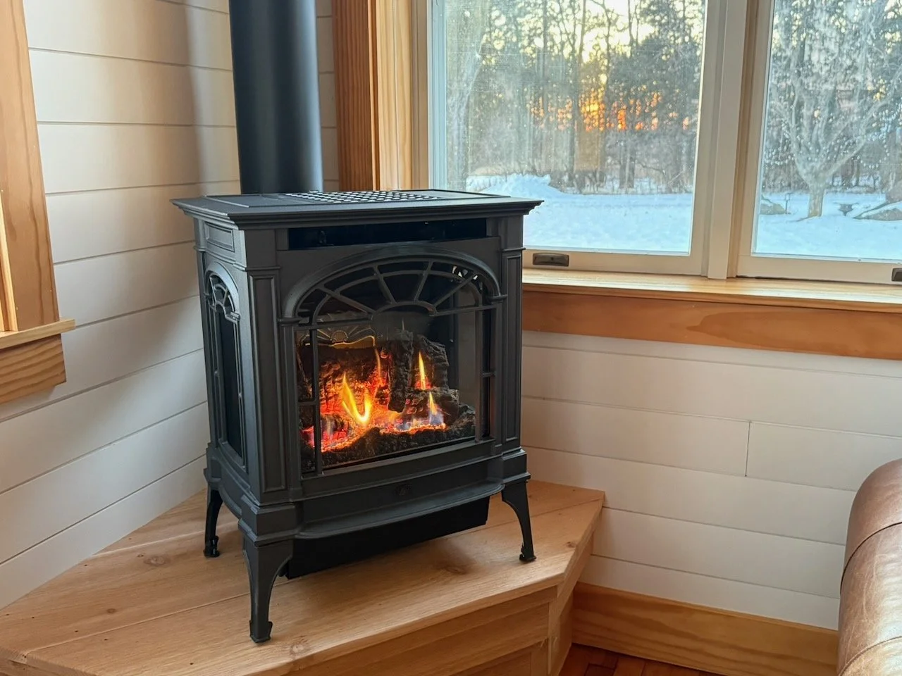 LIVING ROOM, DINING ROOM, KITCHEN: All three rooms on the main level are open and connected and filled with natural light. The LIVING ROOM is suited for relaxing on the comfy chairs and couch, where during cooler times of year, you can enjoy the warmth of the classic stove fireplace (gas fueled). The KITCHEN is fully equipped for all your culinary ideas, with double-oven and range, Kuerig Duo coffee maker, and a traditional farm sink overlooking the yard. Full list of kitchen items available upon request.