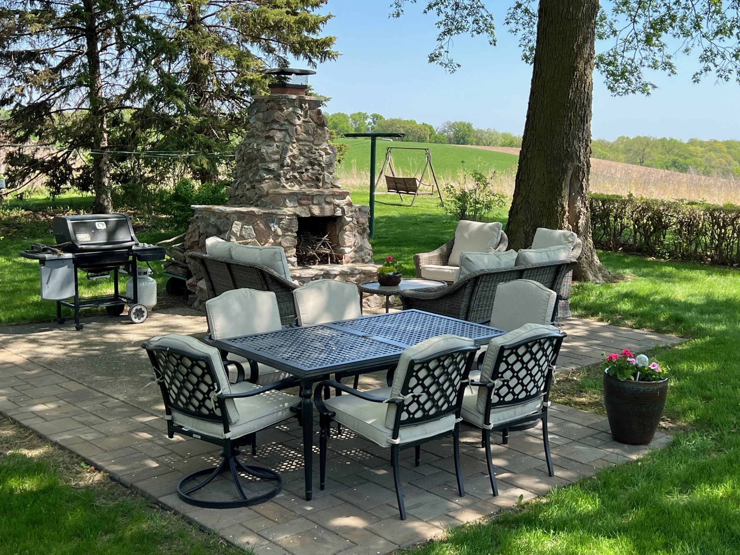 OUTDOOR FIREPLACE, PATIO, GRILL, FIRE RINGS: Great for family times, meals, and taking in life at the farm. Free split firewood available.